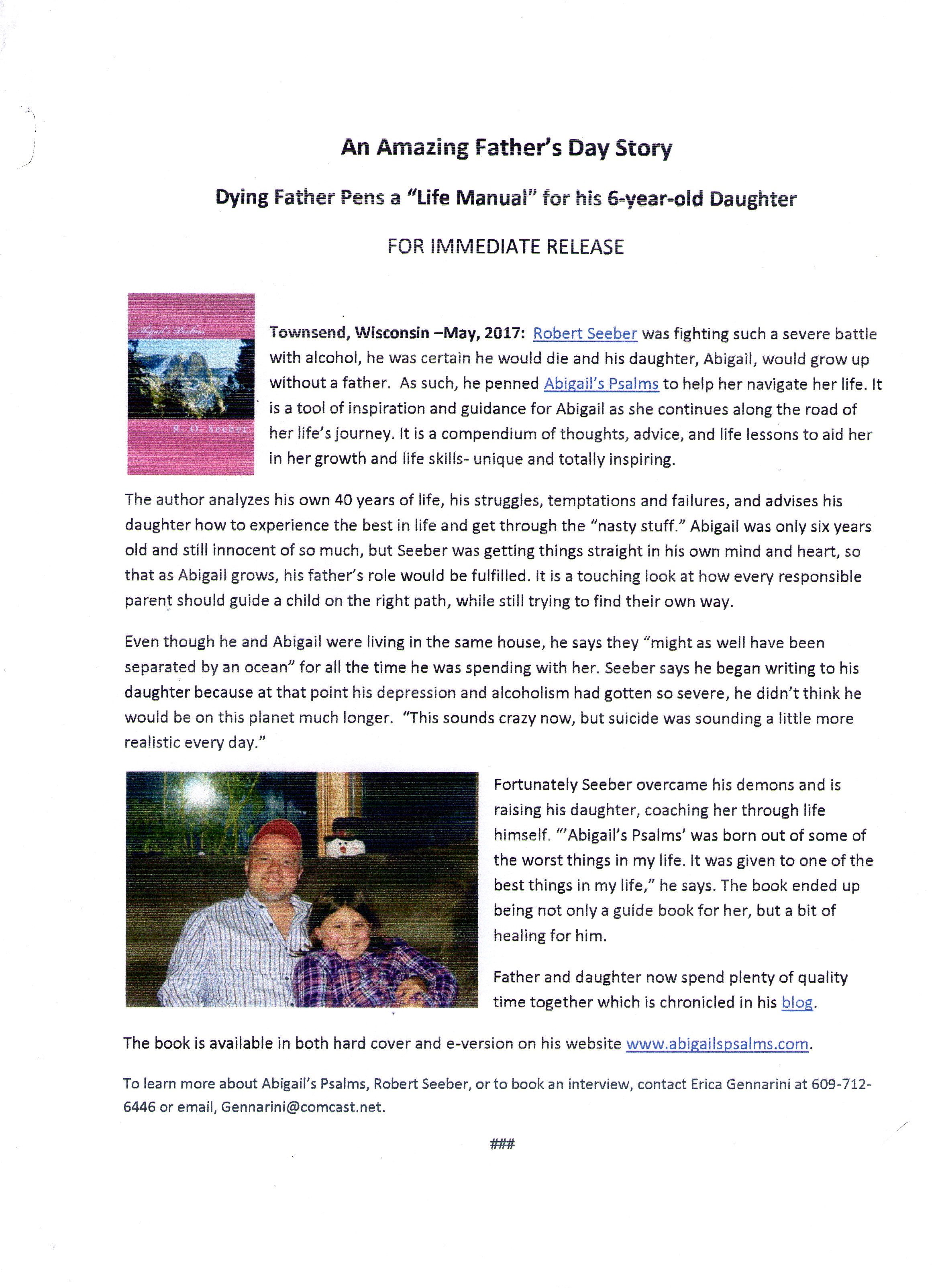 Abigail’s Psalms was written by R.O. Seeber. Inspired by his daughter, the author designed this motivational book as a tool for guidance through life’s journey. It is a collection of thoughts, advice, and life lessons to aid readers in their growth and life skills.